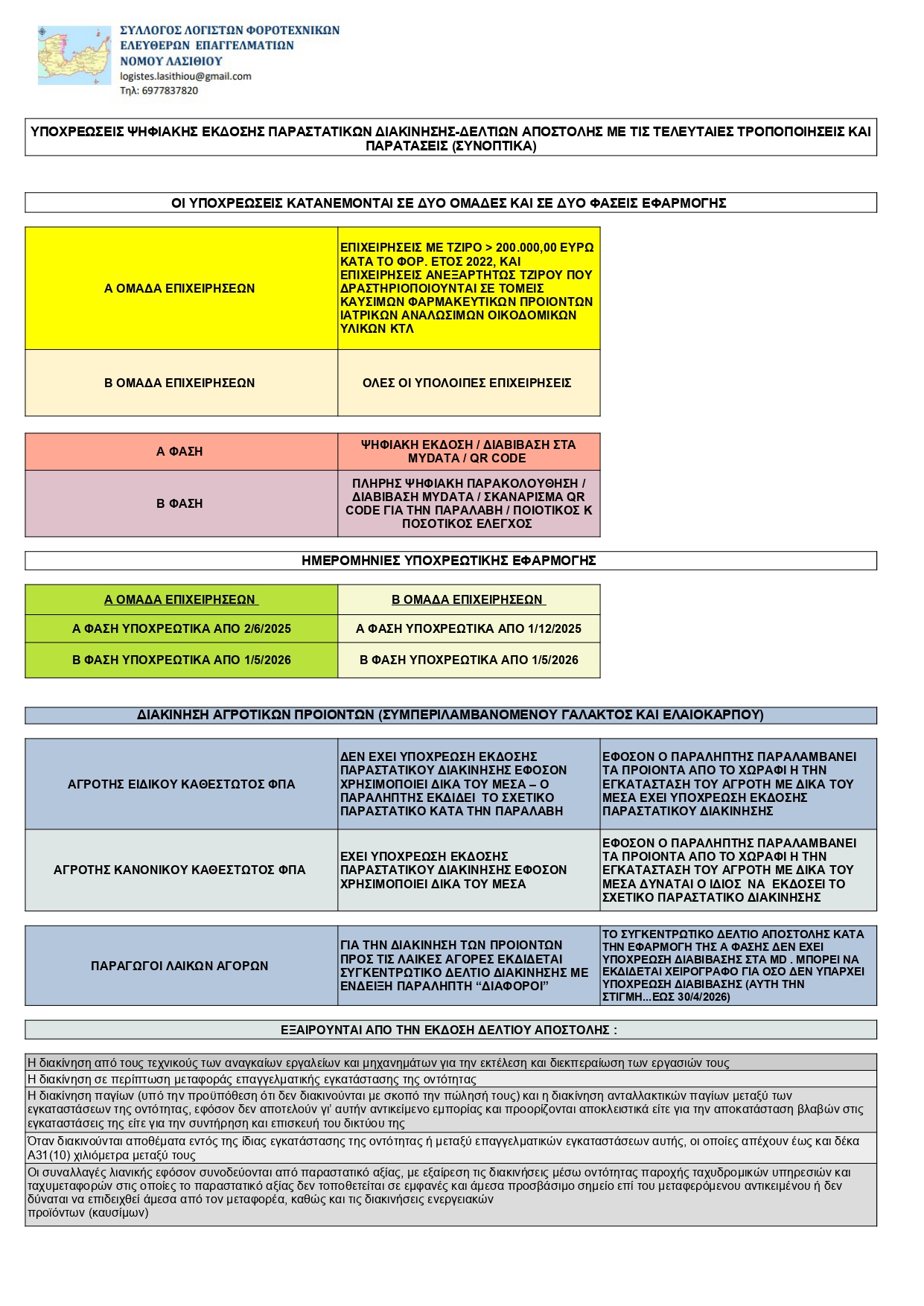 Ο Σύλλογος Λογιστών-Φοροτεχνικών Ελεύθερων Επαγγελματιών Νομού Λασιθίου προσκαλεί τα μέλη του στην Ετήσια Τακτική Γενική Συνέλευση που θα γίνει το Σαββατο 25 Οκτωβρίου 2025 και ώρα 11:00 π.μ στο Εργατικό Κέντρο Αγίου Νικολάου, οδός Λευκών Ορέων 3.